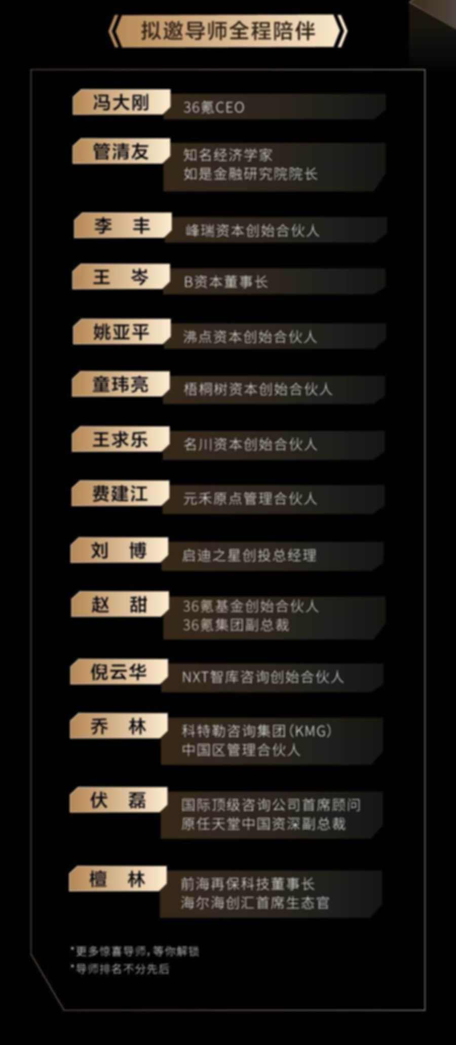 基于十多年撮合创业者和投资人的经验,36氪·创投氪堂以创投势能为核心脉络,隆重推出【融资加速营】,联袂多位一线投资人、大咖导师等,为有融资需求的创业者提供专业的融资理论知识和可落地的实操方法论,助力企业更好、更快、更优地实现融资!