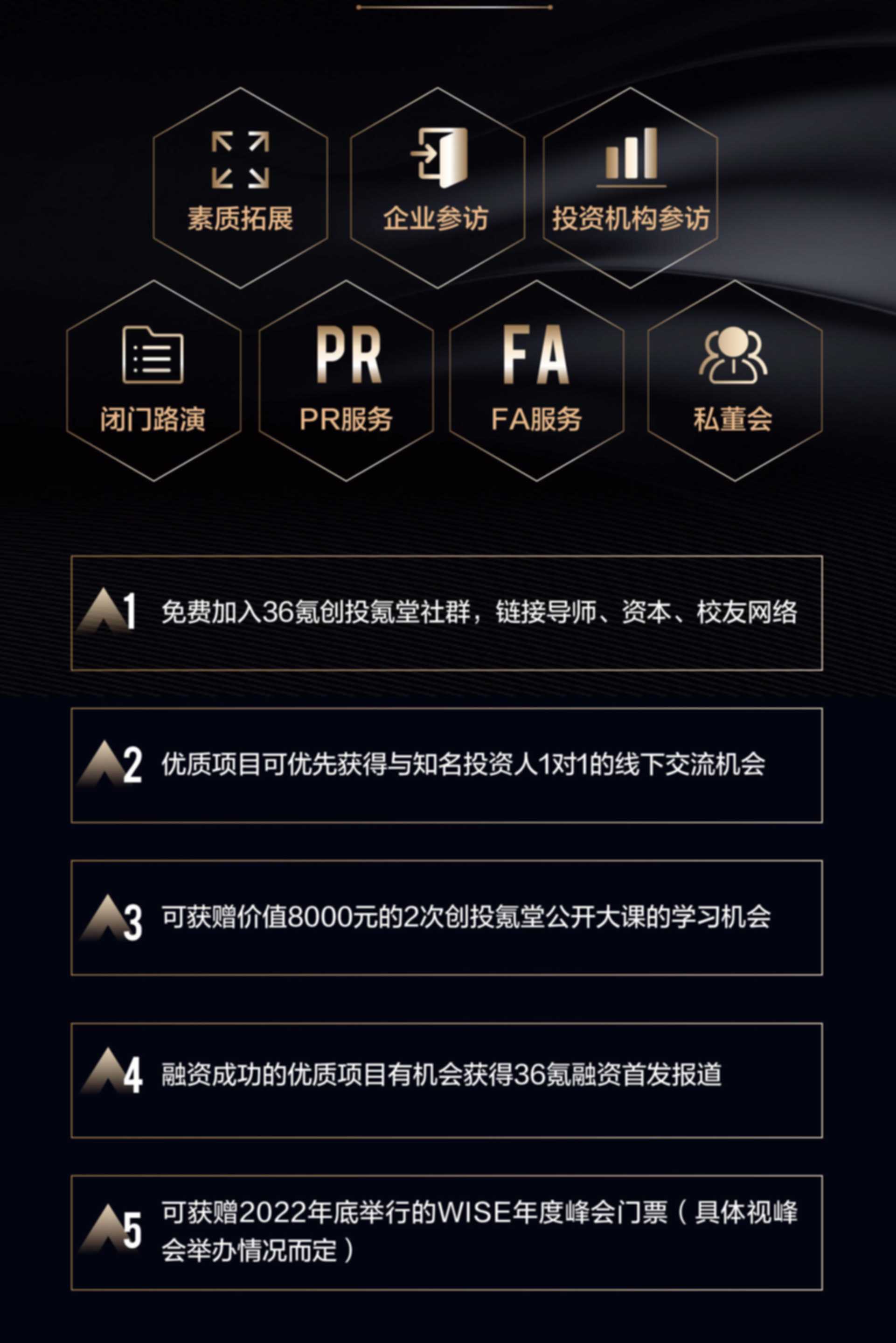基于十多年撮合创业者和投资人的经验,36氪·创投氪堂以创投势能为核心脉络,隆重推出【融资加速营】,联袂多位一线投资人、大咖导师等,为有融资需求的创业者提供专业的融资理论知识和可落地的实操方法论,助力企业更好、更快、更优地实现融资!