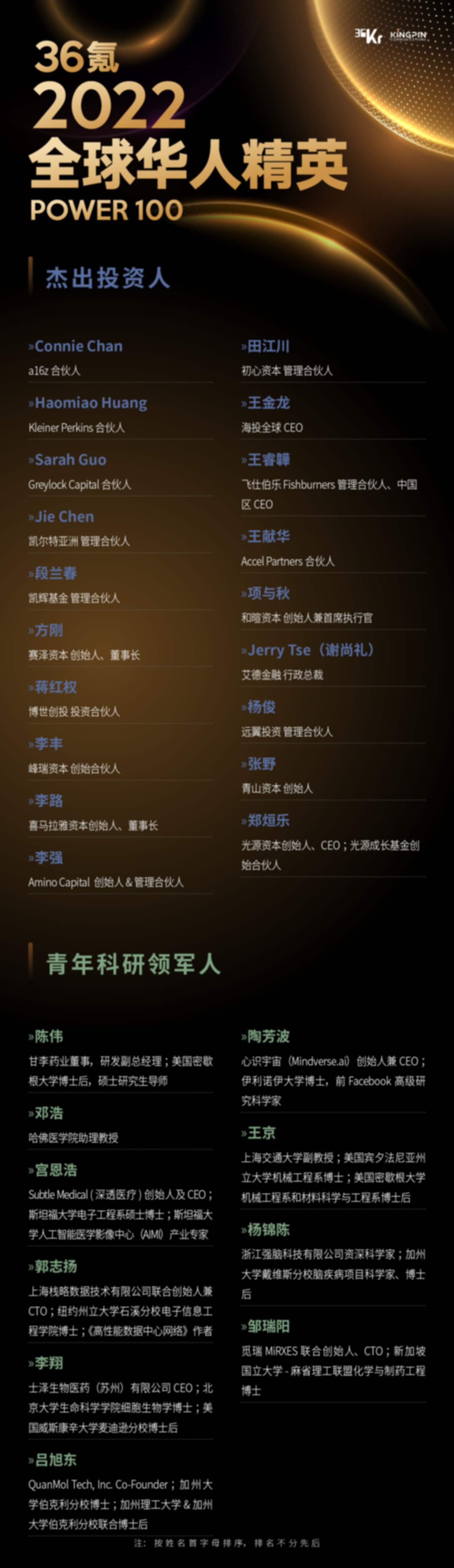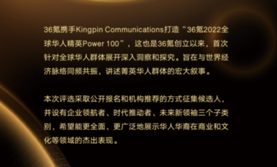 「36氪2022全球华人精英Power100」正式启动,聚焦全球华人影响力