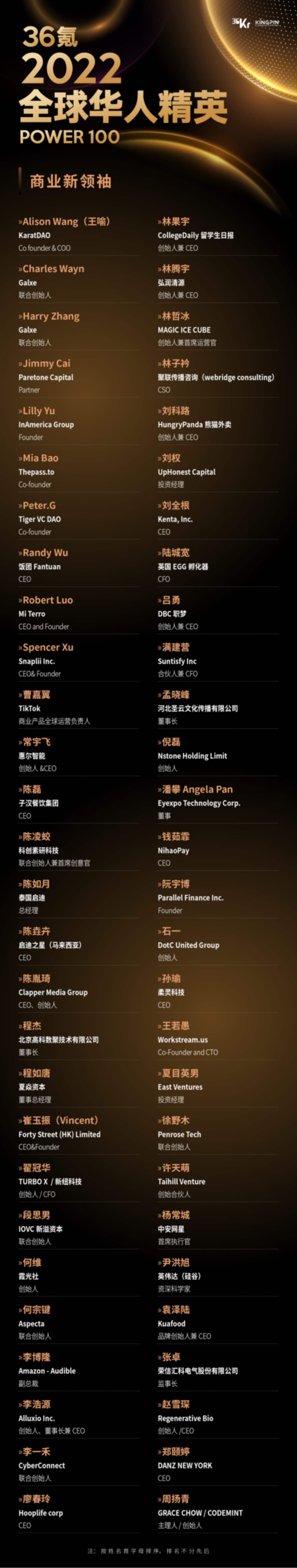 100张全球原生的华人创业面孔丨36kr 2022全球华人精英Power100发布
