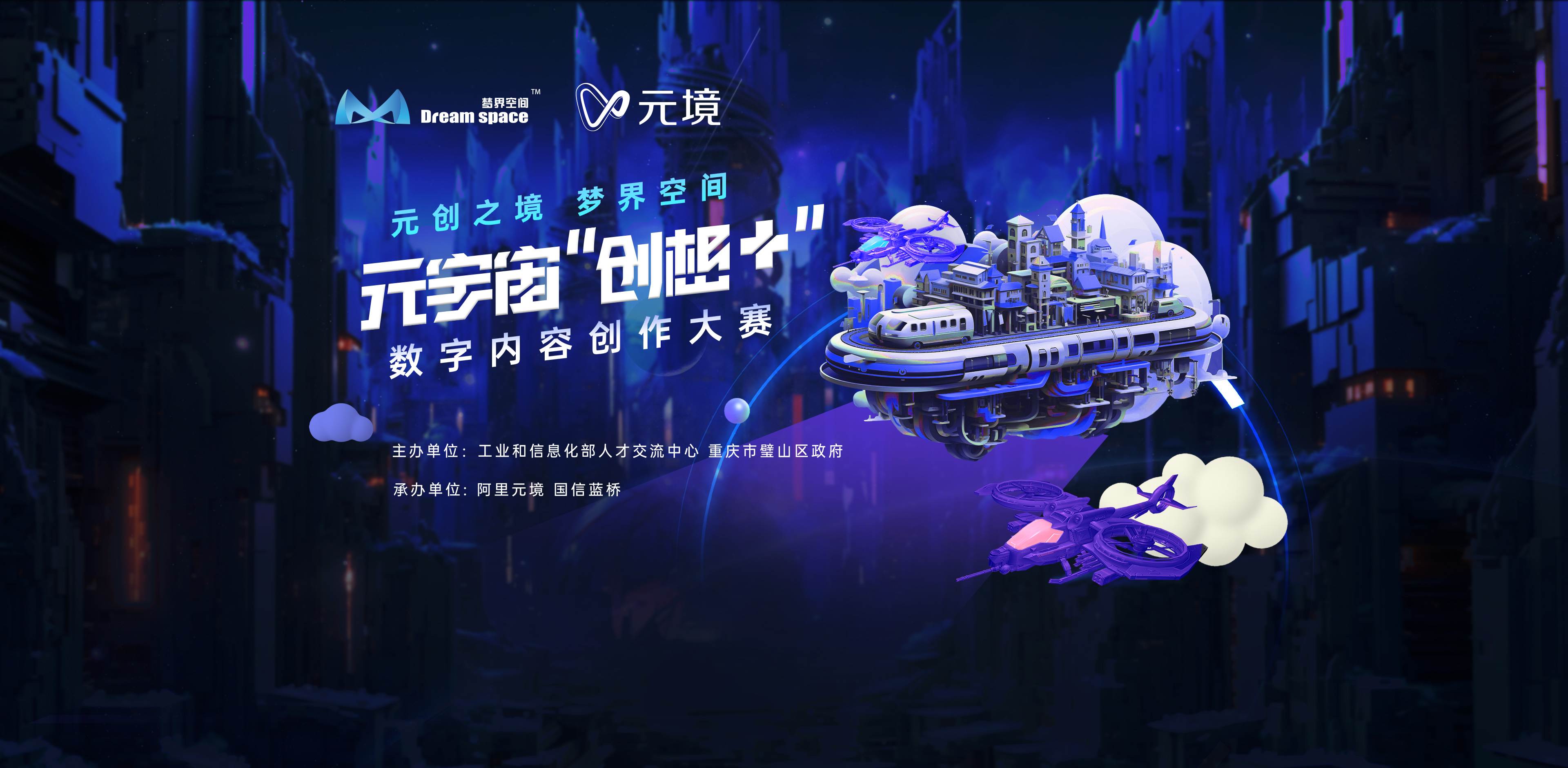 由工业和信息化部人才交流中心和重庆市璧山区政府联合主办,阿里元境、国信蓝桥承办的“元境杯”元宇宙“创想+”数字内容创作大赛,以“元创之境、梦界空间”为主题,面向所有热爱元宇宙和数字内容创作的创想家们发出号召。大赛将为你提供一个实现想象力和创新力的舞台,让你的创想照进现实。