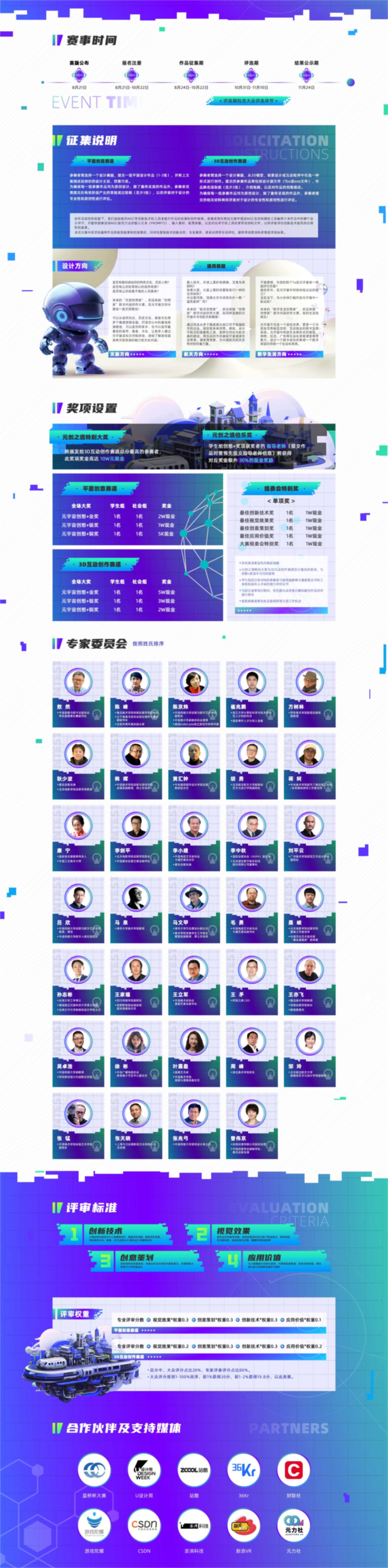 “公开、公平、公正”,本次大赛邀请了众多知名艺术家、高校教授和元宇宙业内专家作为评委,将从创新技术、视觉效果、创意策划、应用价值多个维度综合评估,绝不放过一个好作品。同时大赛在评选中增加了全网公示环节,确保过程公开透明。
