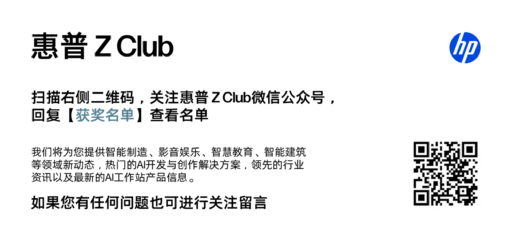 3.获奖名单获取方式:用户留言后,可使用微信扫描下方二维码,关注并进入获奖名单唯一公布渠道:惠普Z Club微信公众号,回复【获奖名单】查看名单。