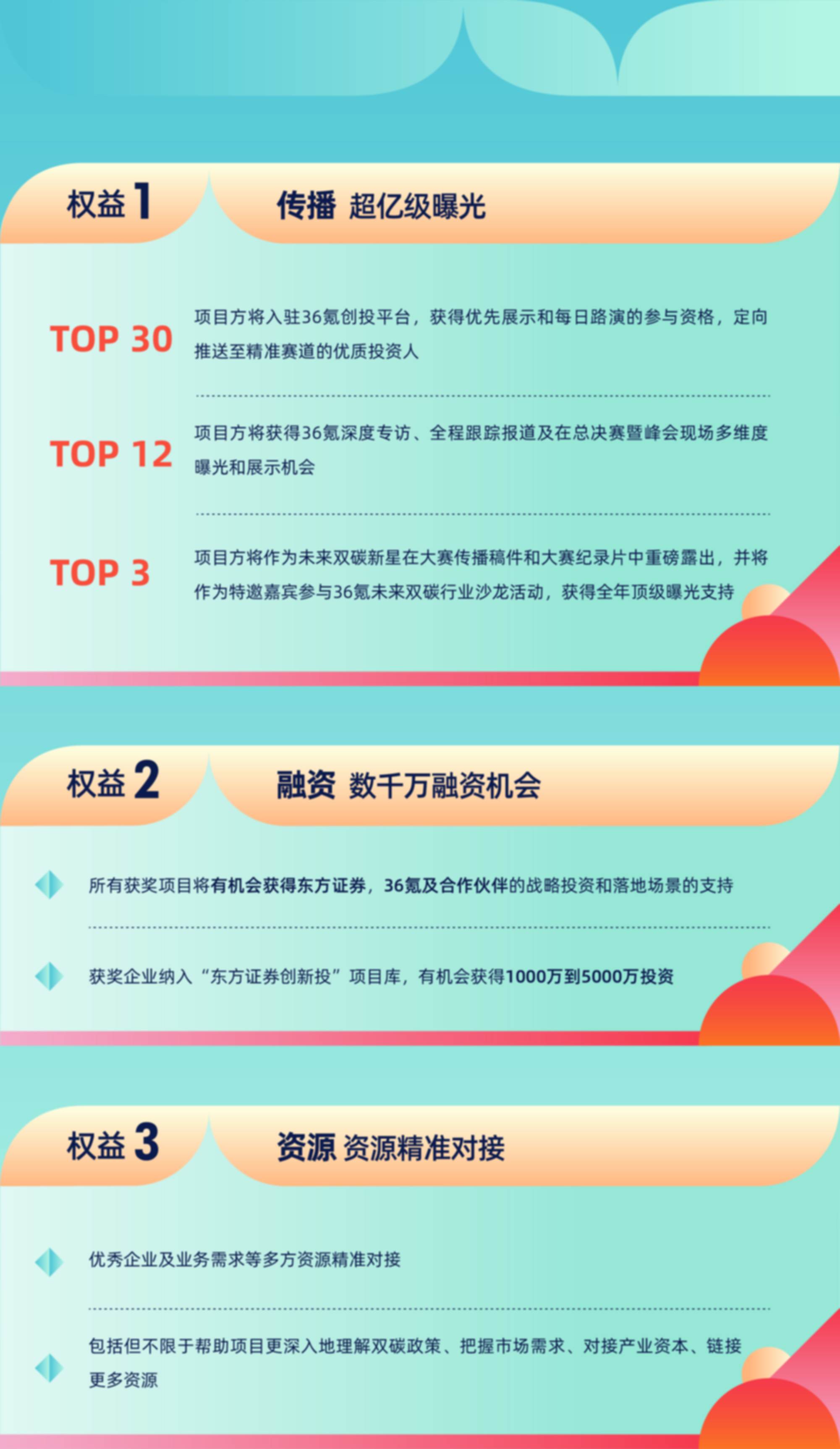 36氪与东方证券希望通过大赛,共同挖掘出核心投资赛道中的明星创业公司,帮助他们更深入地把握市场需求、对接产业资本、链接更多资源,最终达成可持续发展的长远目标。