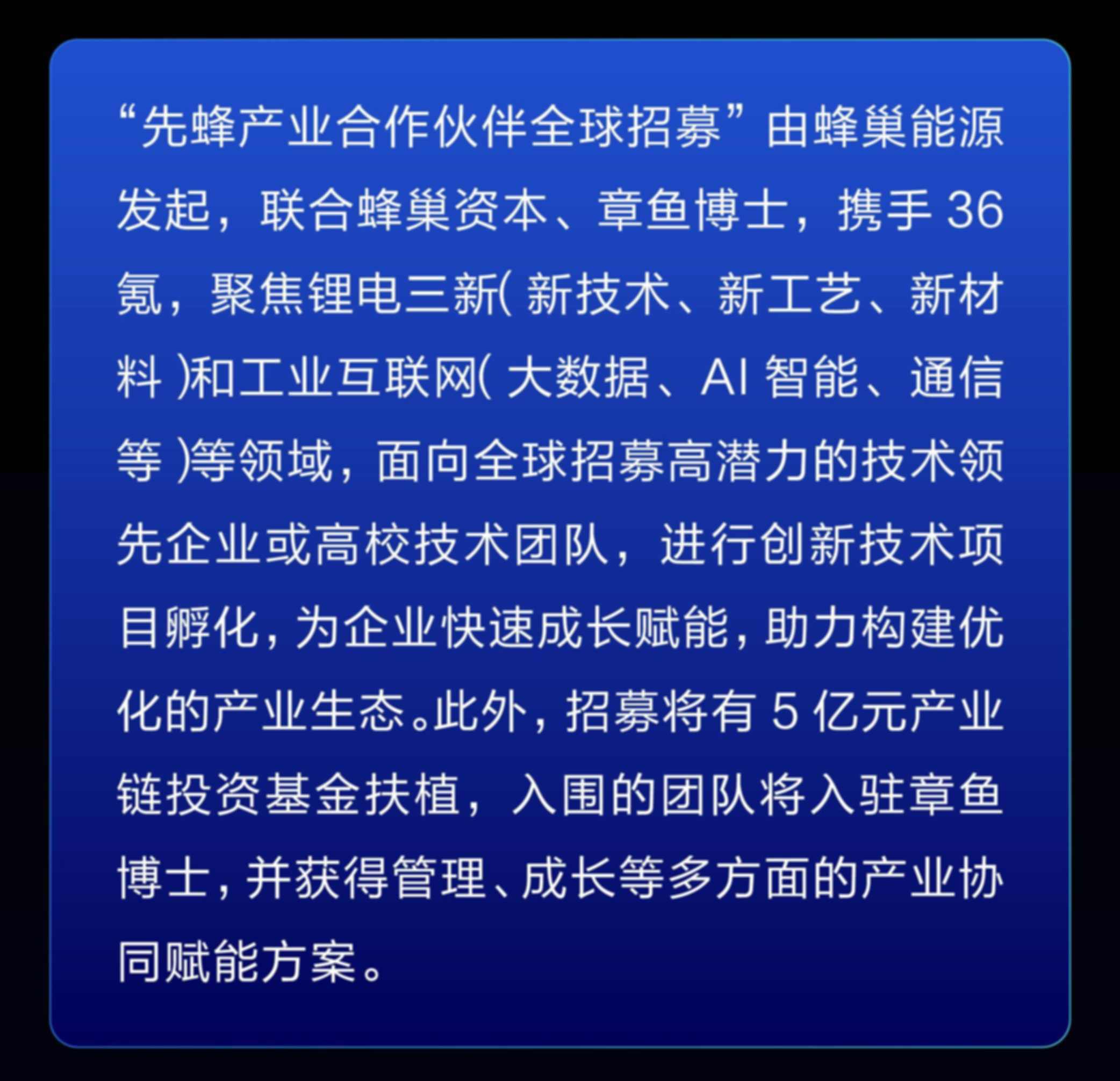 专设 5 亿基金,蜂巢能源启动先蜂产业合作伙伴全球招募